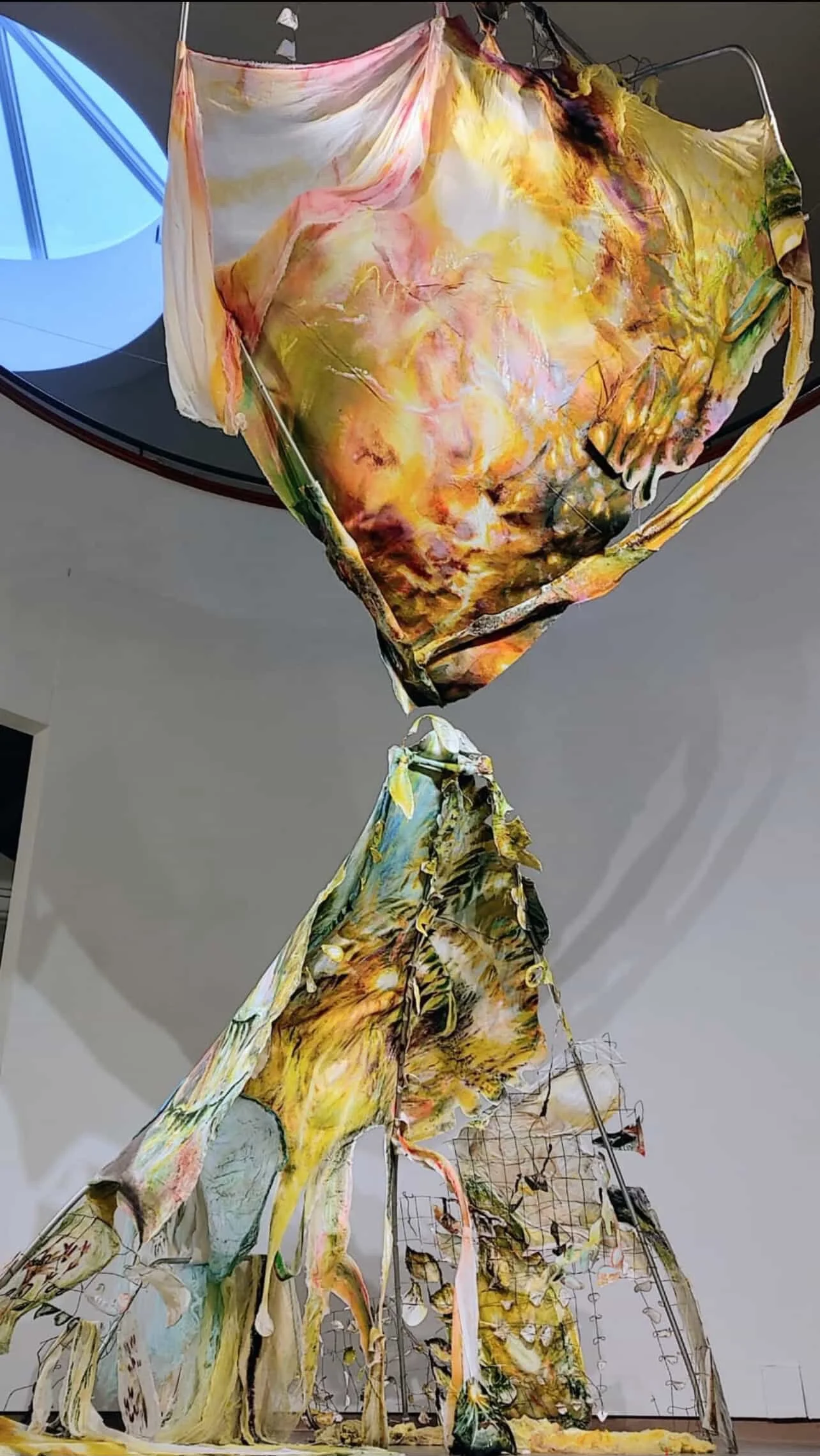 Tarantula Nebula Dancing in a Jadeite Forest, 144” x 60” x 60”, acrylic on canvas with bamboo frame